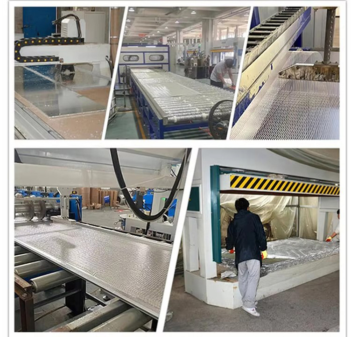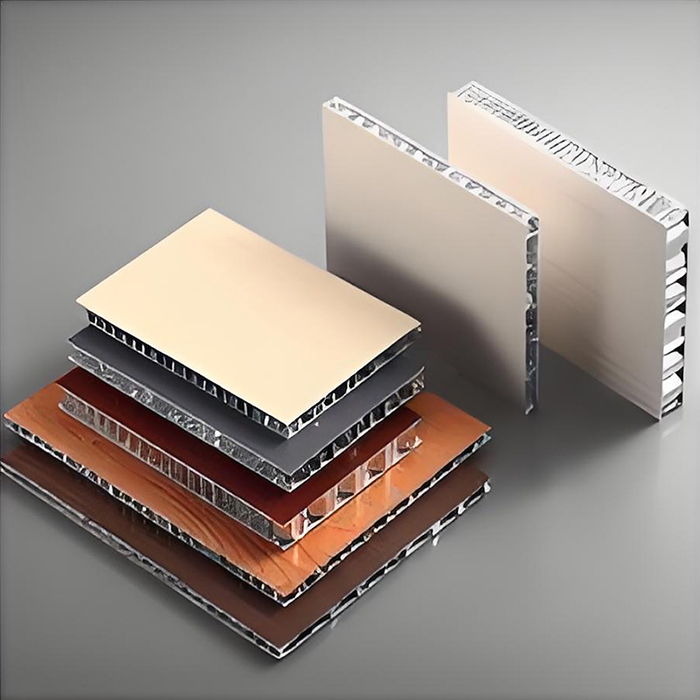 Aluminium honingraatwandpaneel is een sandwichstructuur, bestaande uit twee lagen aluminium en een honingraatkern. Het paneel is hoofdzakelijk gemaakt van hoogwaardige aluminiumplaat van 3003H24-legering of 5052AH14 aluminiumplaat van hoge mangaanlegering als basismateriaal, met een paneeldikte van 0,8 ~ 1,5 mm en een bodemplaatdikte van 0,6 ~ 1,0 mm. De honingraatkern is gemaakt van zeer dunne 3003 aluminiumfolie met een dikte van 0,04 ~ 0,06 mm en een zijlengte van 5 ~ 6 mm. Het heeft een zeshoekige honingraatgatenstructuur met gaten die met elkaar zijn verbonden. Het gehele verwerkingsproces wordt voltooid in een moderne fabriek met behulp van hete perstechnologie.