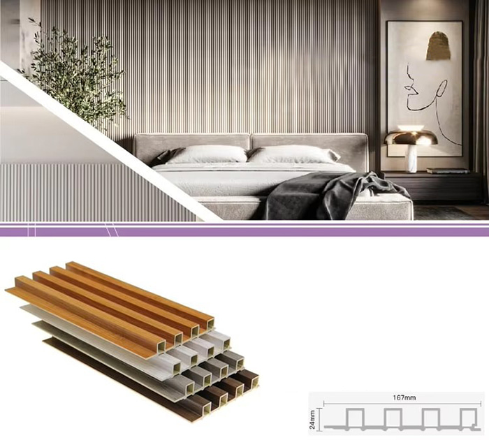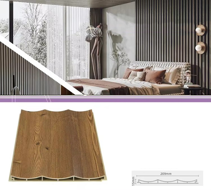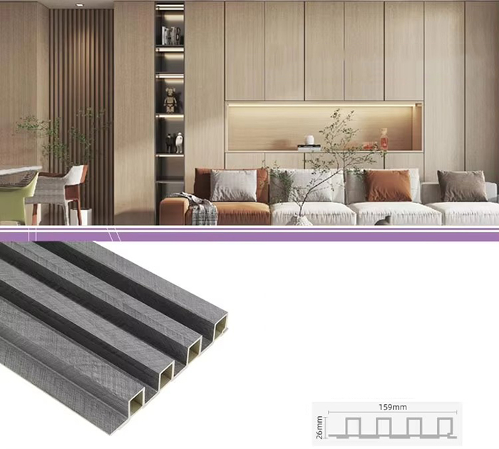 WPC-binnenpanelen, of hout-kunststofcomposiet-binnenpanelen, zijn een nieuw type milieuvriendelijk bouwmateriaal gemaakt van houtvezels of houtpoeder in combinatie met thermoplastische materialen (zoals polyethyleen, polypropyleen of polyvinylchloride). Dit materiaal wordt gemaakt door middel van een extrusieproces bij hoge temperaturen, en het oppervlak wordt meestal gedecoreerd door lamineren, 3D-printen of filmlamineren, waardoor het een natuurlijke textuur vertoont en aanvoelt als hout, terwijl het ook de duurzaamheid en weersbestendigheid van plastic heeft. WPC-binnenpanelen hebben niet alleen het mooie uiterlijk van hout, maar overwinnen ook de tekortkomingen van hout, zoals gemakkelijke vervorming, vochtopname en bederf, waardoor ze een ideaal decoratiemateriaal voor binnenshuis zijn