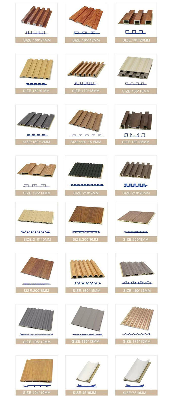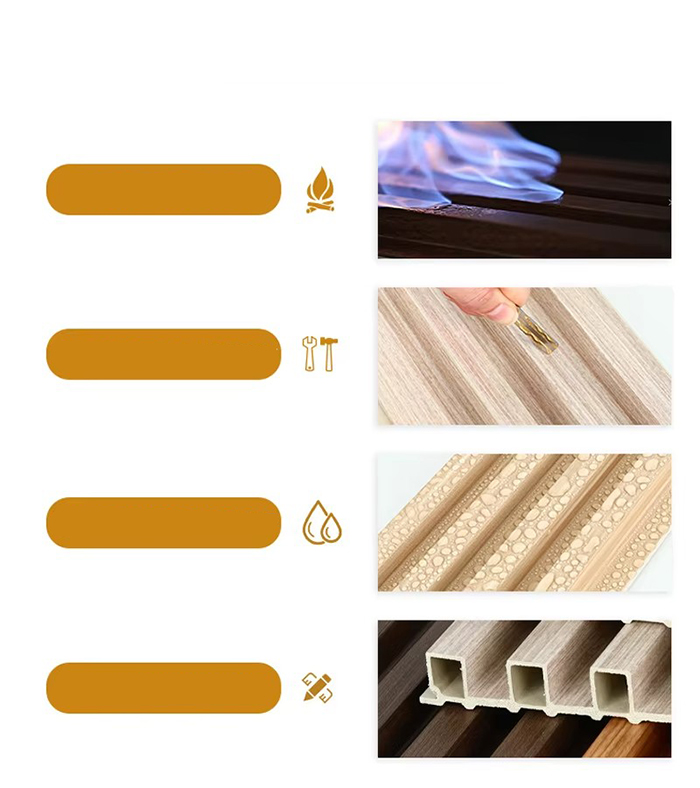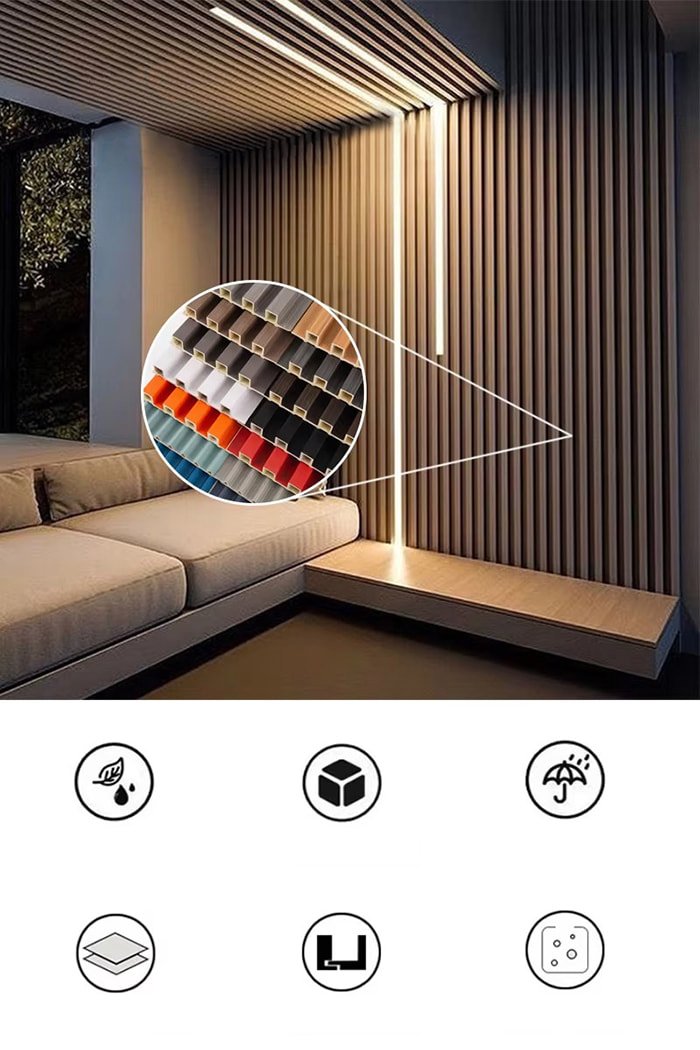 WPC-binnenpanelen zijn nieuwe milieuvriendelijke decoratieve panelen gemaakt van houtvezels of bamboevezels als kerngrondstof, vermengd met PVC-hars, calciumcarbonaatpoeder en stabilisator door middel van hoge temperaturen en hoge druk. Het oppervlak maakt gebruik van UV-coating of uiterst nauwkeurige overdrachtstechnologie om de textuur van natuurlijk hout en steen te simuleren, en heeft de kenmerken van waterdicht en vochtbestendig, schimmelbestendig en antibacterieel, licht van gewicht en hoge sterkte. Het is geschikt voor binnenmuren, plafonds, achtergrondmuren en andere scènes, en is een ideale keuze om traditioneel houtfineer en plastic hoekplaten te vervangen.