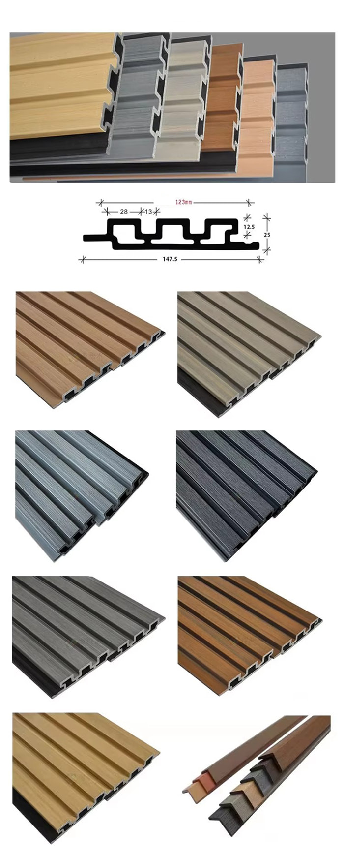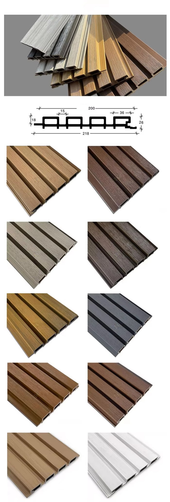 WPC-buitenbord is een speciaal decoratief buitenbord gemaakt van houtvezels of bamboevezels als kerngrondstof, vermengd met PVC-hars, calciumcarbonaatpoeder en anti-ultraviolette additieven door middel van hoge temperaturen en hoge druk. Het oppervlak is voorzien van een UV-uithardende coating of een uiterst nauwkeurige imitatietechnologie voor hout-/steenkorreloverdracht, die de textuur van natuurlijk hout combineert met de weersbestendigheid van kunststof, en de kenmerken heeft van waterdicht en vochtbestendig, schimmelbestendig en antibacterieel, anti-ultraviolet, brandvertragend, enz. Het is geschikt voor scènes zoals tuinlandschap, buitenmuurdecoratie, tuinmeubilair, enz., en is een milieuvriendelijk alternatief voor traditioneel antiseptisch hout en steen.