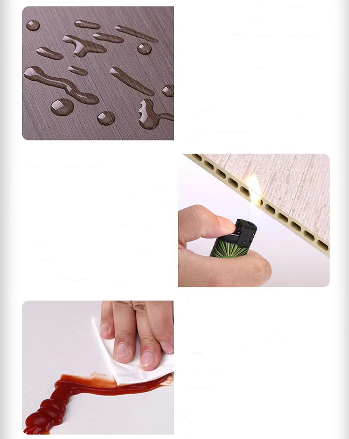 Eenvoudig te installeren: het is licht van gewicht en kan worden gezaagd, geschaafd, gespijkerd en geboord. Er zijn verschillende installatiemethoden, waardoor tijd en kosten worden bespaard. Gemakkelijk schoon te maken en te onderhouden: het oppervlak is glad, vuil wordt niet gemakkelijk en is gemakkelijk schoon te maken. Veeg het gewoon af met een vochtige doek.