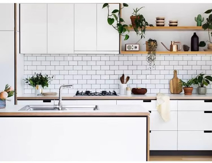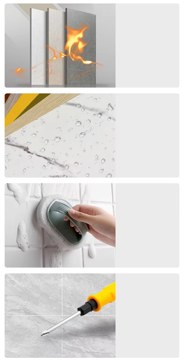 Residentiële renovatieKeuken/badkamer: Uitstekende vochtbestendige prestaties (waterabsorptie-expansiesnelheid ≤ 0,2%), kan rechtstreeks in contact komen met een vochtige omgeving.