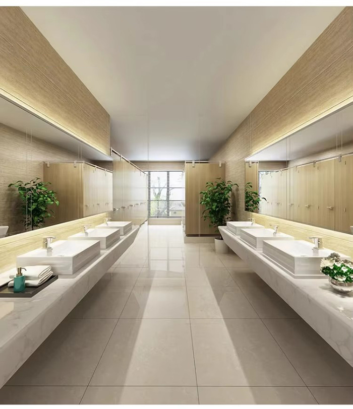 Commerciële ruimteHotel/winkelcentrum: het ontwerp met houtnerf/steennerf verbetert de textuur van de ruimte en ondersteunt snelle demontage en renovatie (hergebruikspercentage ≥ 90%).