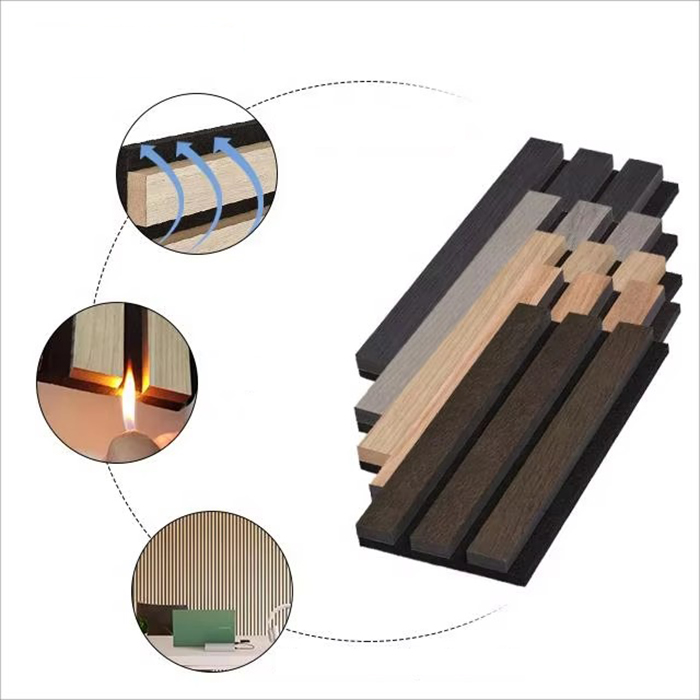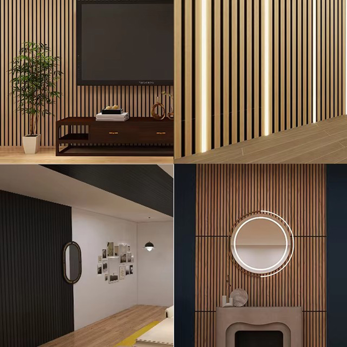 WPC geluidsabsorberend bord is een milieuvriendelijk geluidsabsorberend decoratief materiaal gemaakt van hout-kunststof composietmaterialen. Het maakt gebruik van de verwerkingstechnologie van ecologisch hout, met groeven aan de voorkant en gaten aan de achterkant van het basismateriaal om een geluidsabsorberende structuur met spleetresonantie te vormen. Dit ontwerp zorgt ervoor dat de WPC geluidsabsorberende plaat niet alleen goede geluidsabsorptieprestaties heeft, maar ook waterdichte, vochtbestendige, insectenbestendige, termietbestendige en andere kenmerken heeft. Het oppervlak kan worden gedecoreerd met natuurlijke houtnerven of een verscheidenheid aan kleuren voor rijke visuele effecten.